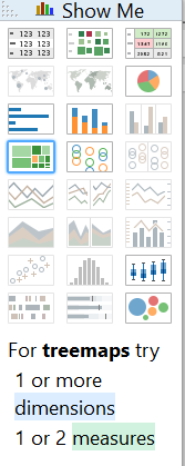 Let's see the basic variant, 1 dimension and 1 measure: Product Sub-Category and Sales.Treemap